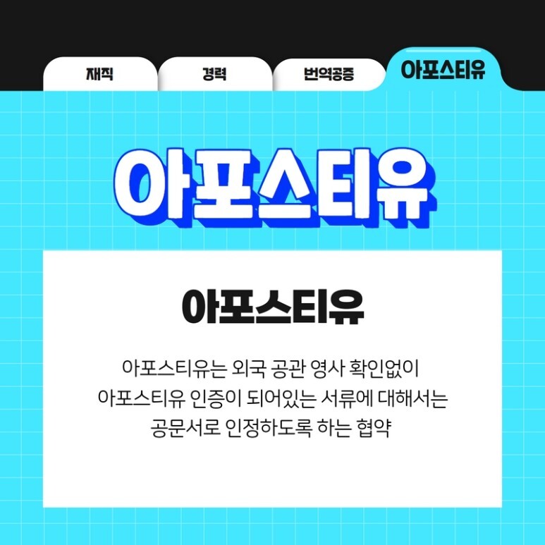※아포스티유는 제출 국 과 발급 국 둘 다 협약국이어야 가능한 절차 입니다.