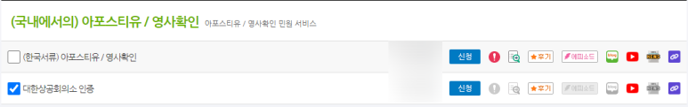 주의사항: 대한상공회의소 인증의 경우 진행 전 반드시 담당자와의 상담이 필요한 상품입니다.
