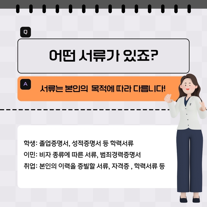 자격증 혹은 이력서, 범죄경력증명서 등등이