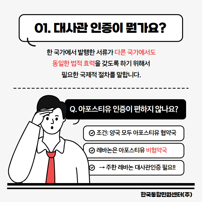 레바논은 아포스티유 비협약국이므로(한국은 협약국)