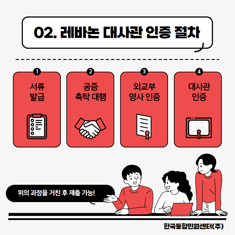 레바논 대사관 인증을 거치려면 다음 절차가 필요합니다.