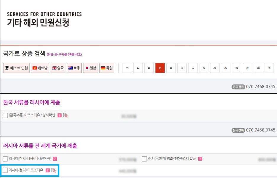 3. 원하시는 상품 클릭 (러시아(현지) 아포스티유)