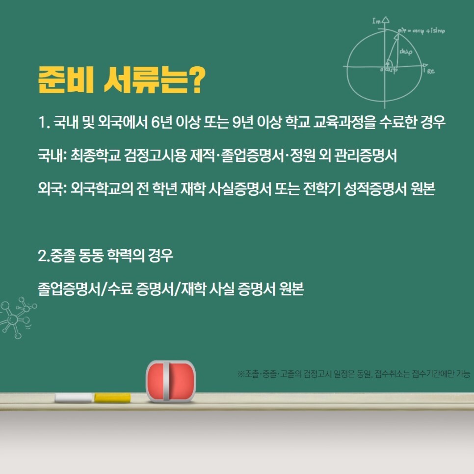 ※조촐·중졸·고졸의 검정고시 일정은 동일, 접수 취소는 접수 기간에만 가능
