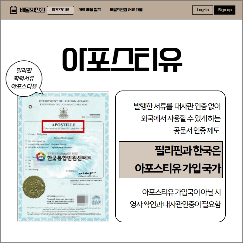 필리핀에서 발급한 서류는 필리핀 현지에서 아포스티유를,