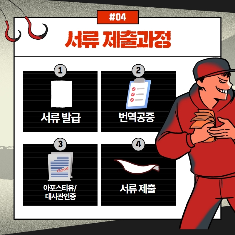 서류 발급부터 번역공증, 아포스티유/대사관인증을 받아야 한다니...