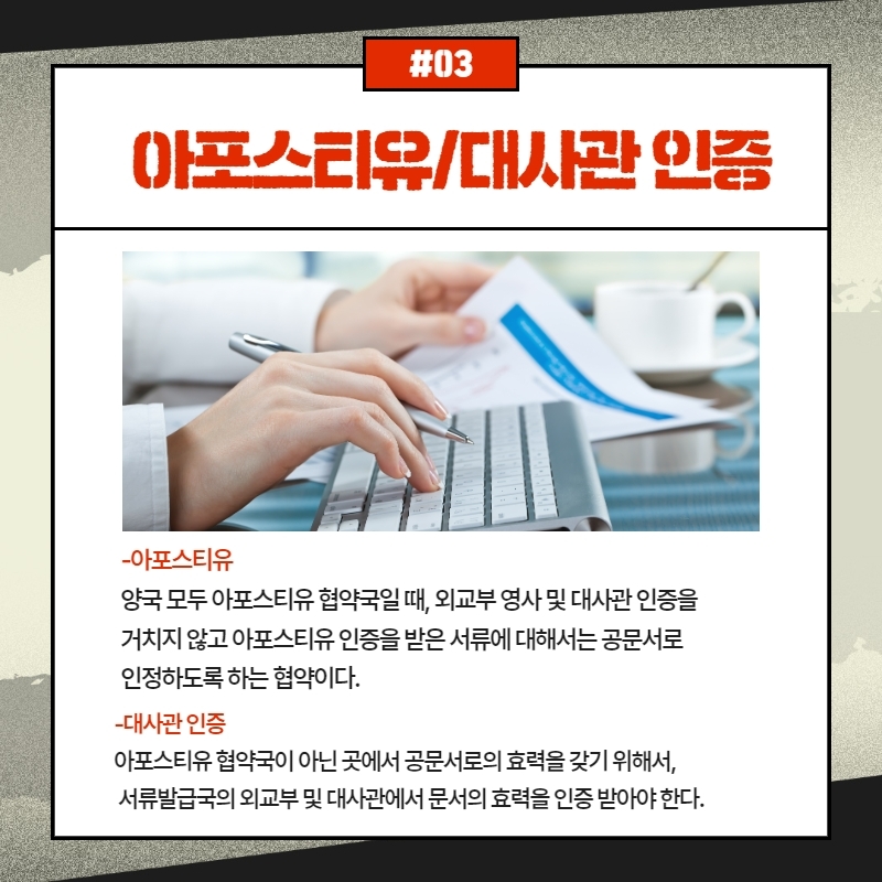 이 서류를 해외에 제출할 땐 일련의 과정을 거쳐야 합니다.
