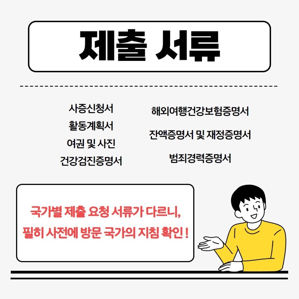 ( 국가별로 제출 서류가 상이할 수 있으니