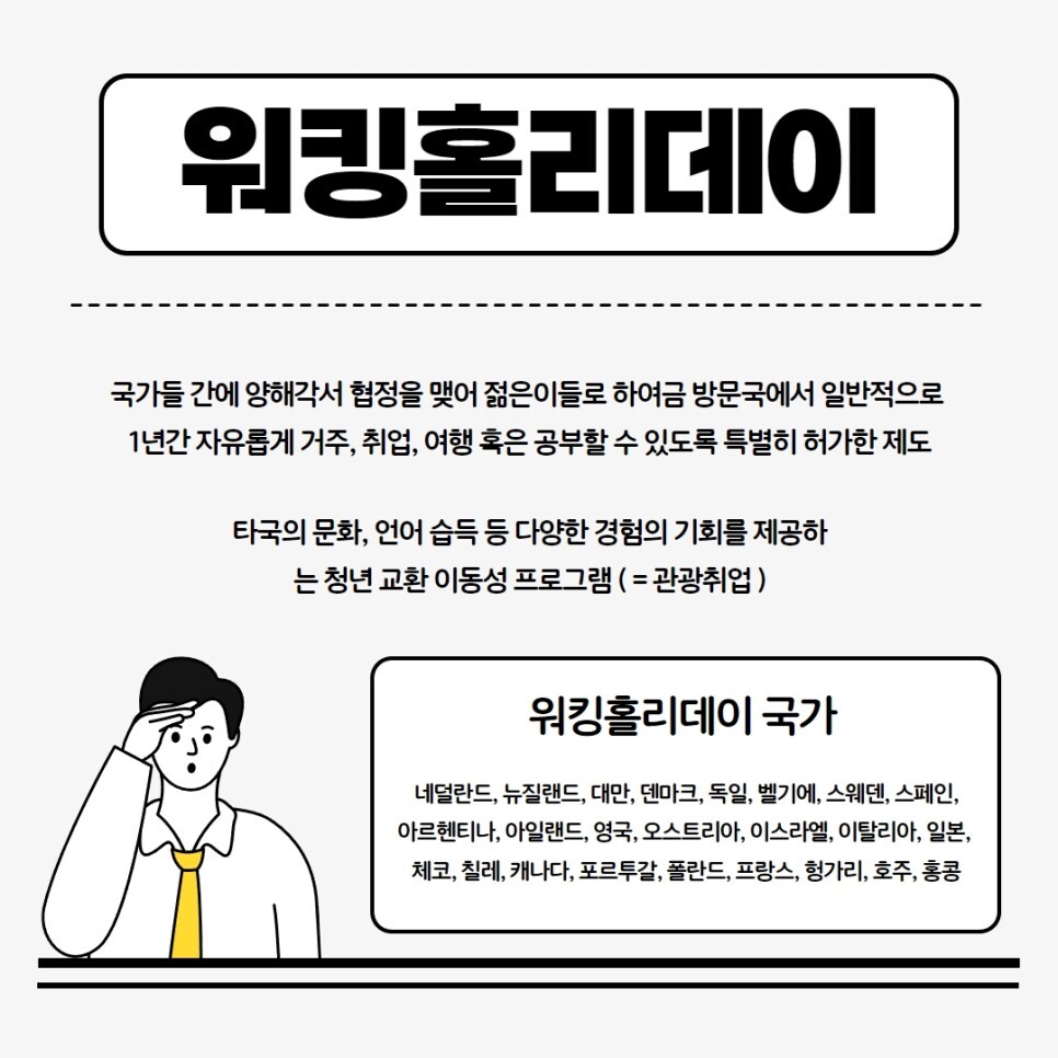 관광 취업 비자, 워킹 홀리데이 비자로 불립니다.