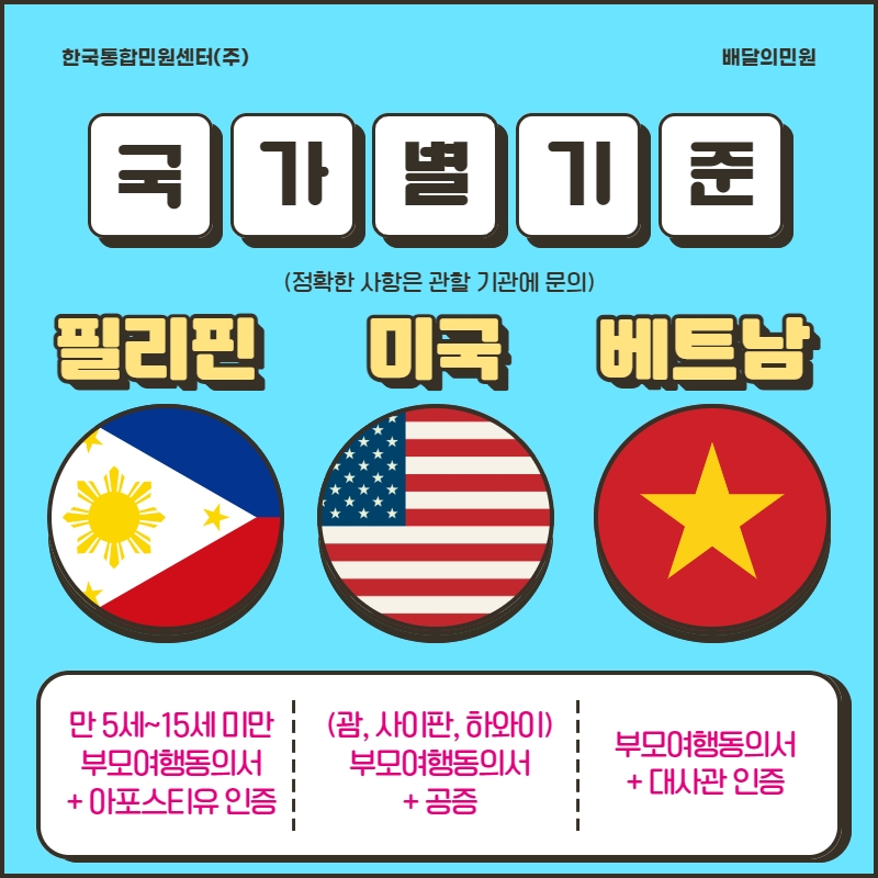 베트남, 중국 등 미가입국에 부모여행동의서를 보내야 한다면