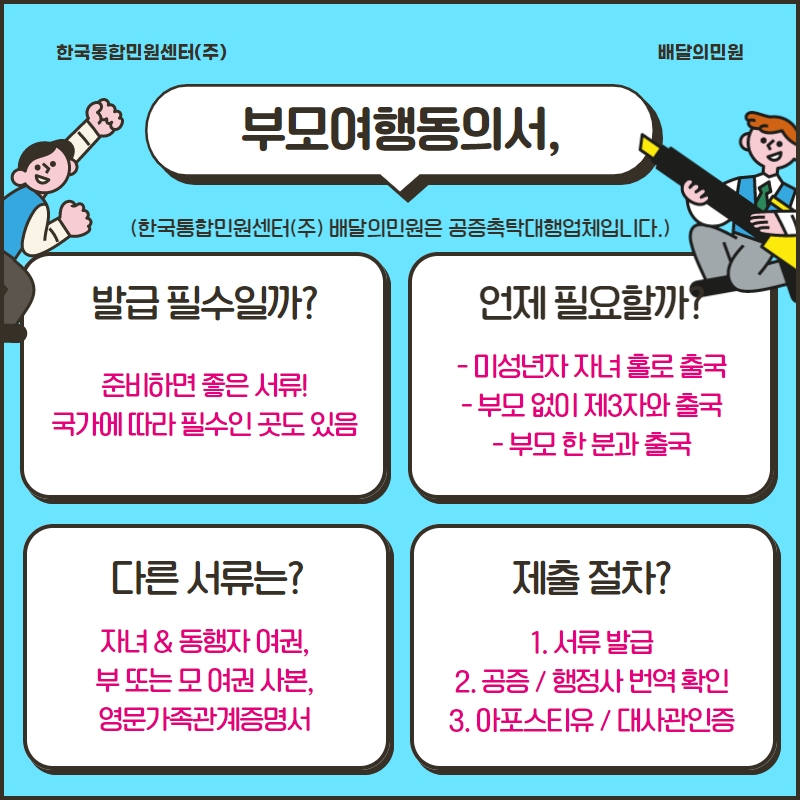 챙겨야 할 것도, 떼야 할 서류도 많은데 부모여행동의서까지 신경 쓸 여력이 없으시다면
