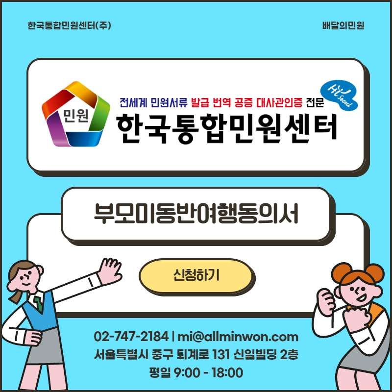 미성년자 자녀가 해외로 여행을 하거나, 기타 다른 일로 출국을 하게 되면 부모님들께서는 준비할 게 뭐가 있는지 검색을 하실 텐데요.
