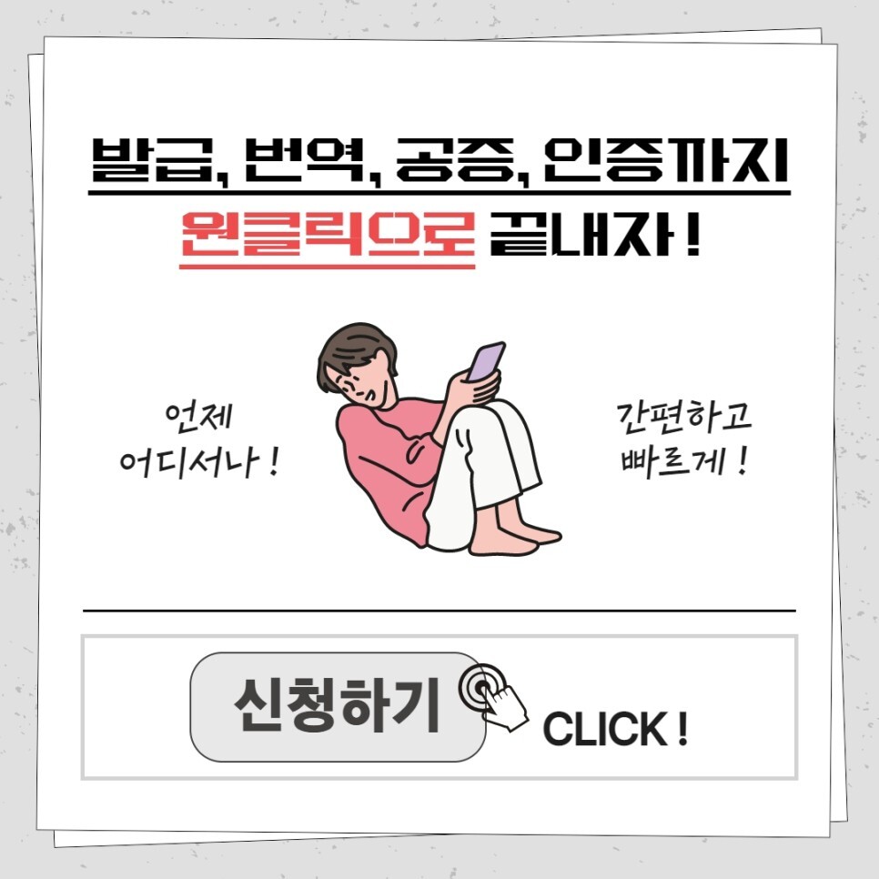 다양한 서류들의 발급, 번역, 공증, 인증 등 문의가 생기시면
