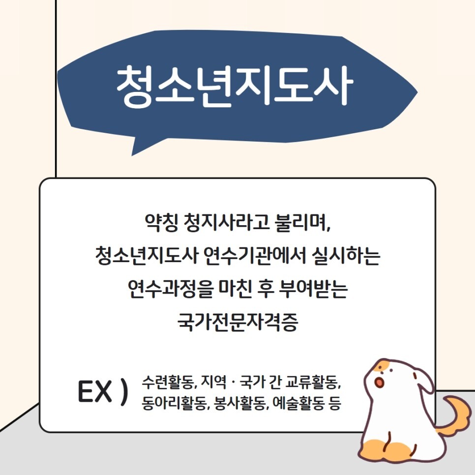 1급 | 2급 청소년지도사 자격증 소지 + 청소년 육성업무 종사 경력 3년 |
