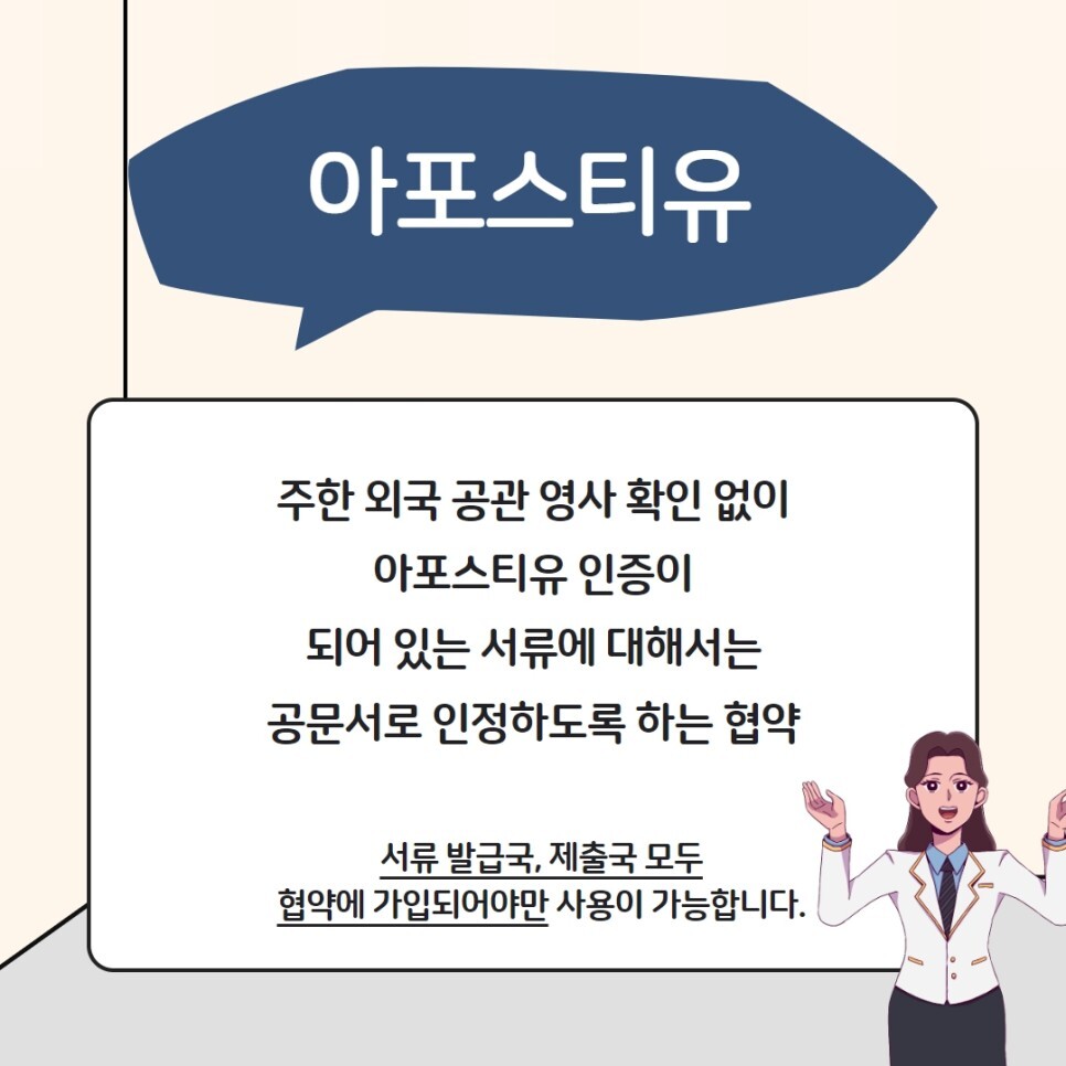 아포스티유 협약에 가입되어 있어야만 사용이 가능하며