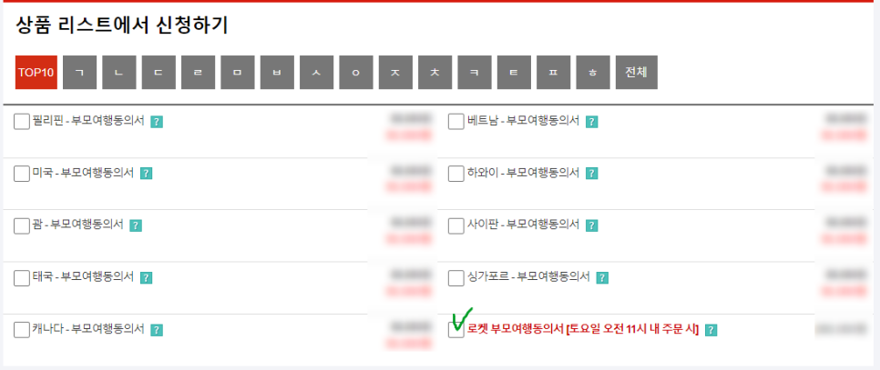 ※몇몇 국가는 부모여행동의서 제출이 필수입니다