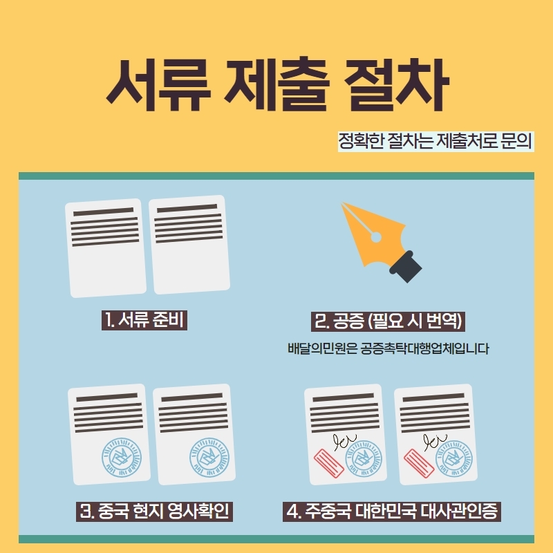 중국 졸업증명서, 성적증명서 등 학력서류 대사관인증 신청방법