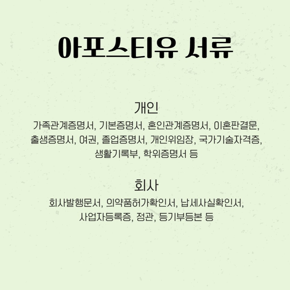 아포스티유에 사용되는 서류들이 따로 있지는 않구요!!