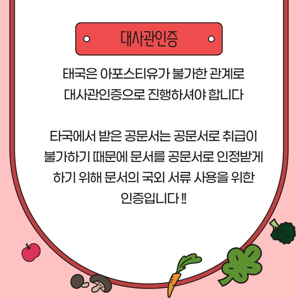먼저 태국은 아포스티유 인증이 불가합니다 !!