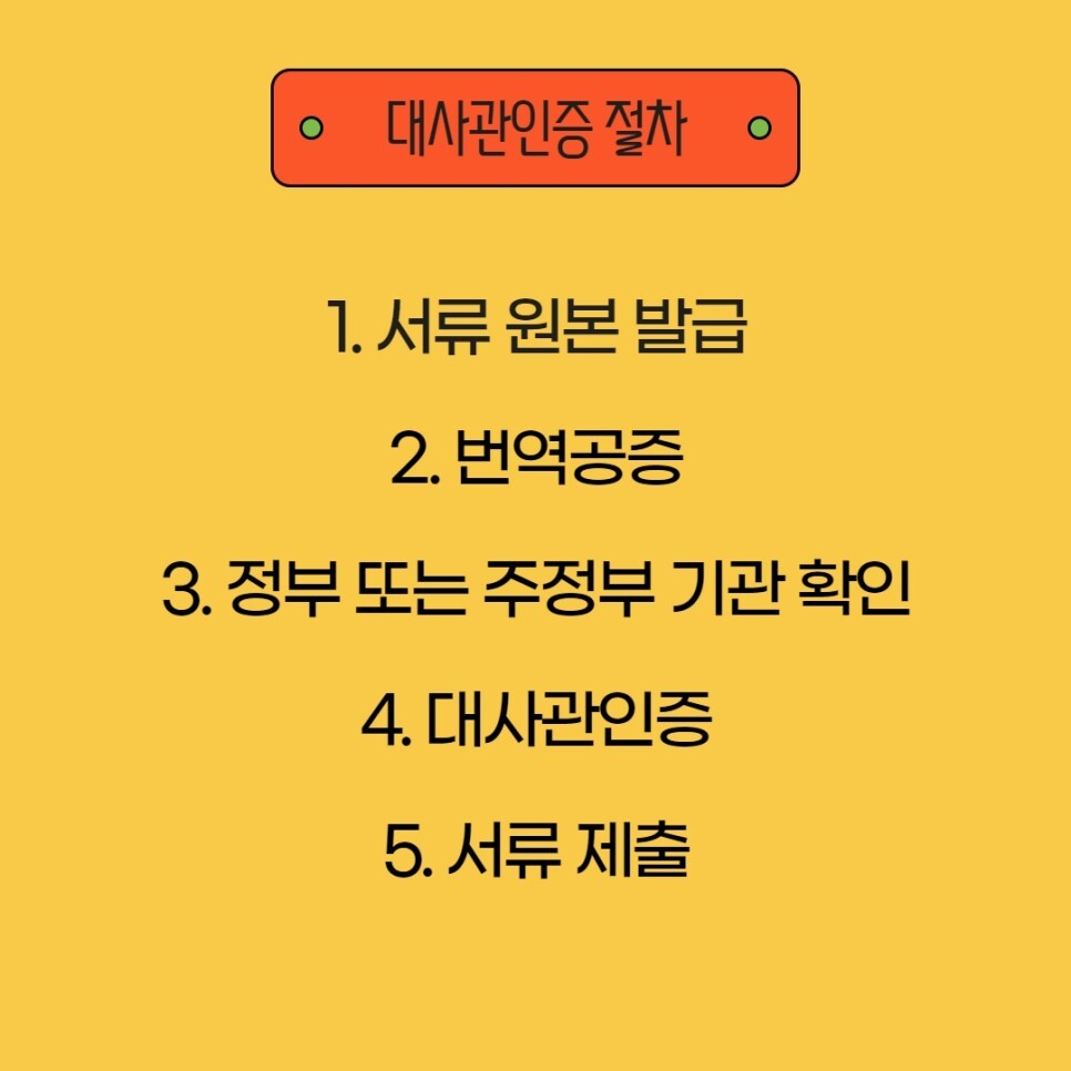 대사관인증 절차로는 총 5가지 절차가 있는데요