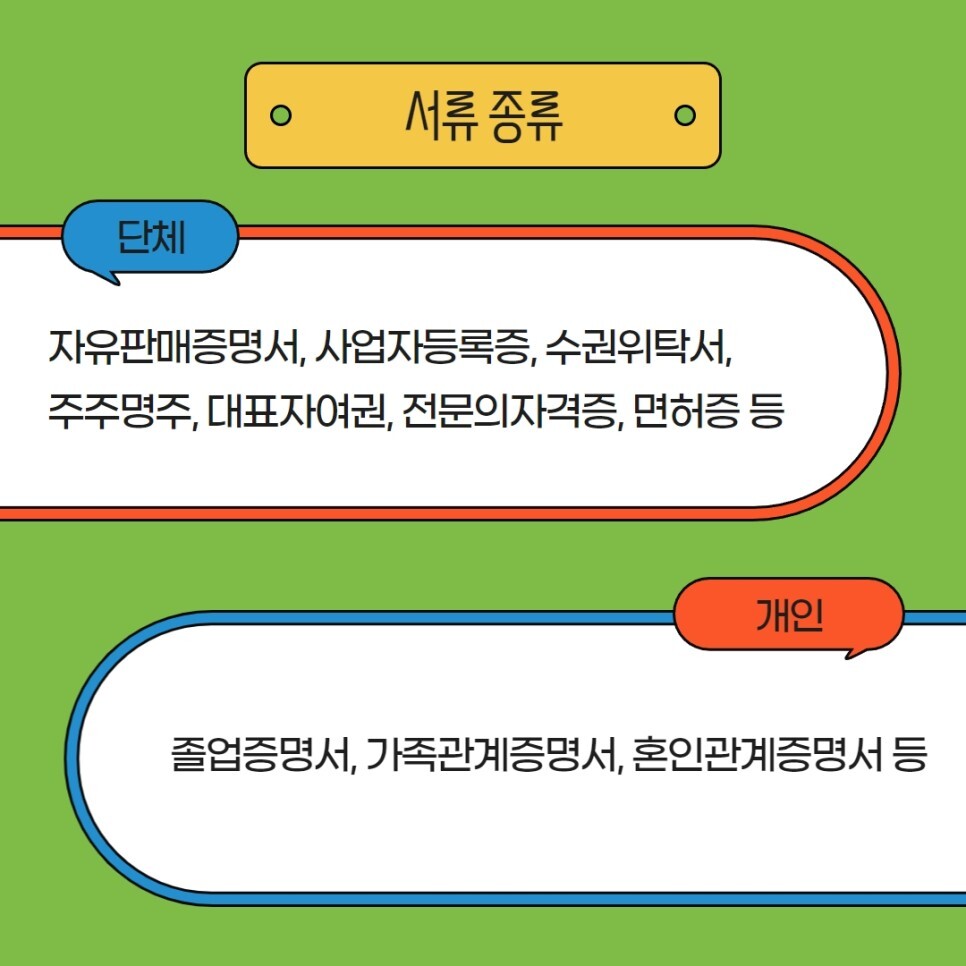 자유판매증명서, 사업자등록증, 수권위탁서, 주주명주,