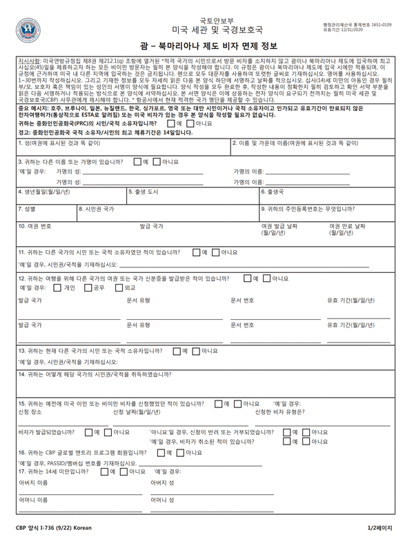 괌 비자면제신청서 작성 방법 | 한글 영문 양식 파일 | 한국통합민원센터