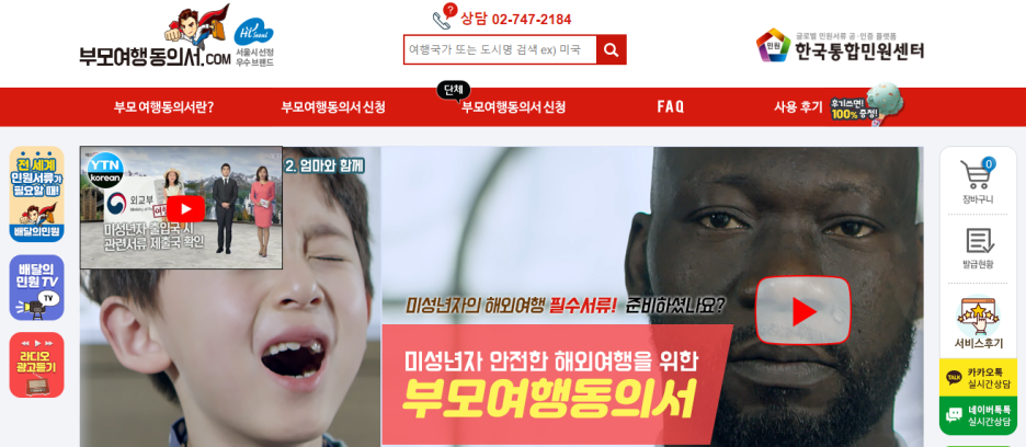 한국통합민원센터에서 부모여행동의서 · 번역공증을