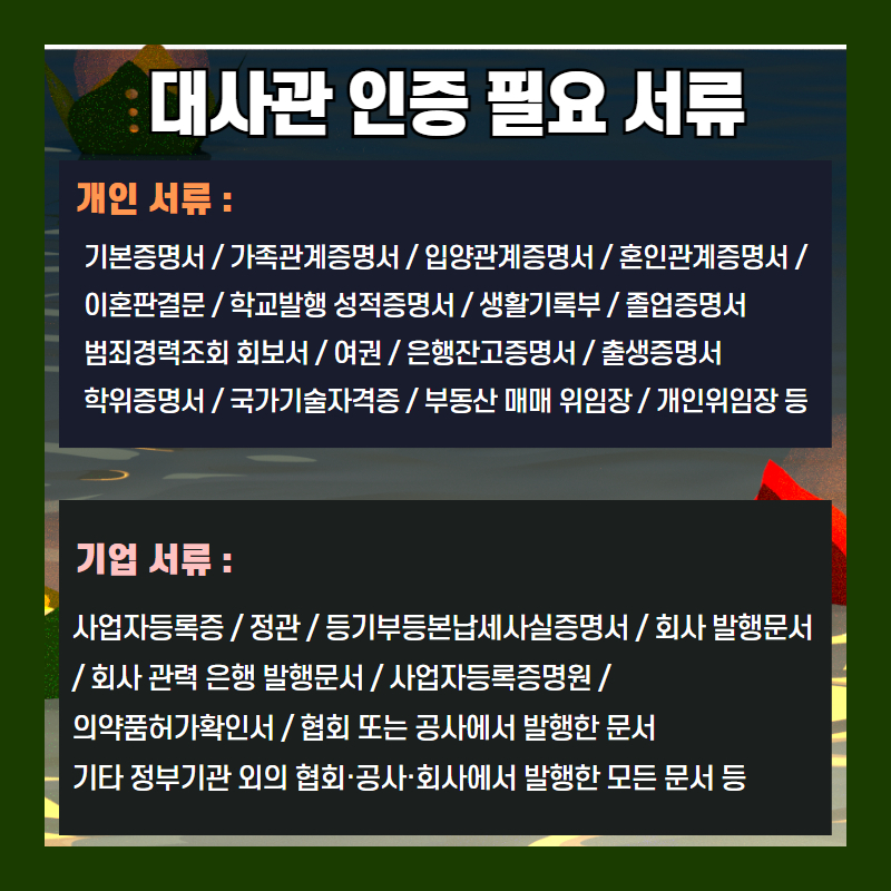 대사관 인증 절차까지 반드시 거쳐야 합니다.