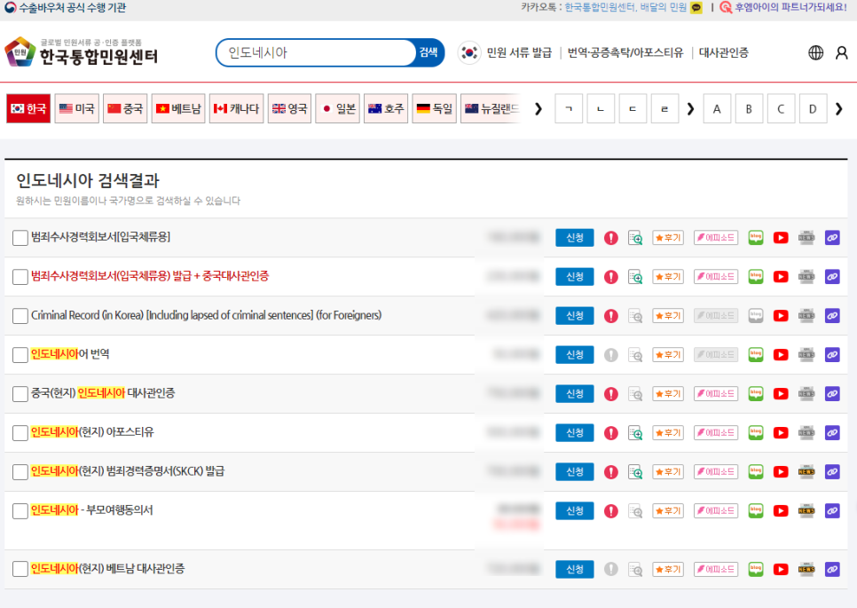 인도네시아에서 한국을 서류를 제출하고자 할때