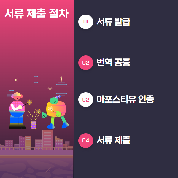 번역 공증부터 아포스티유까지 원스톱으로 진행을 도와드리고 있습니다