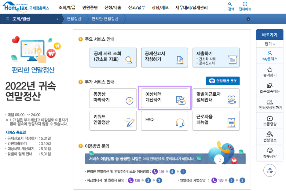 홈택스를 통해 예상세액을 계산해 보실 수도 있습니다.