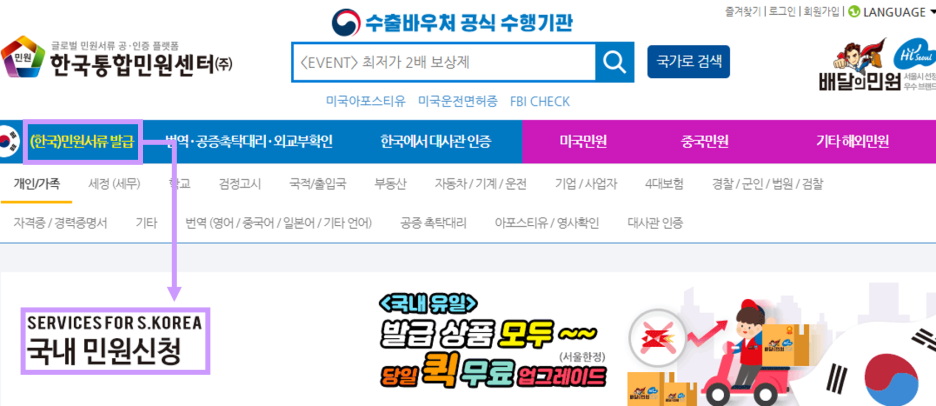 한국 민원서류 발급 배달의 민원 서비스를 통해서 신속하고 간편하게 민원서류를 발급 받으시기 바랍니다!