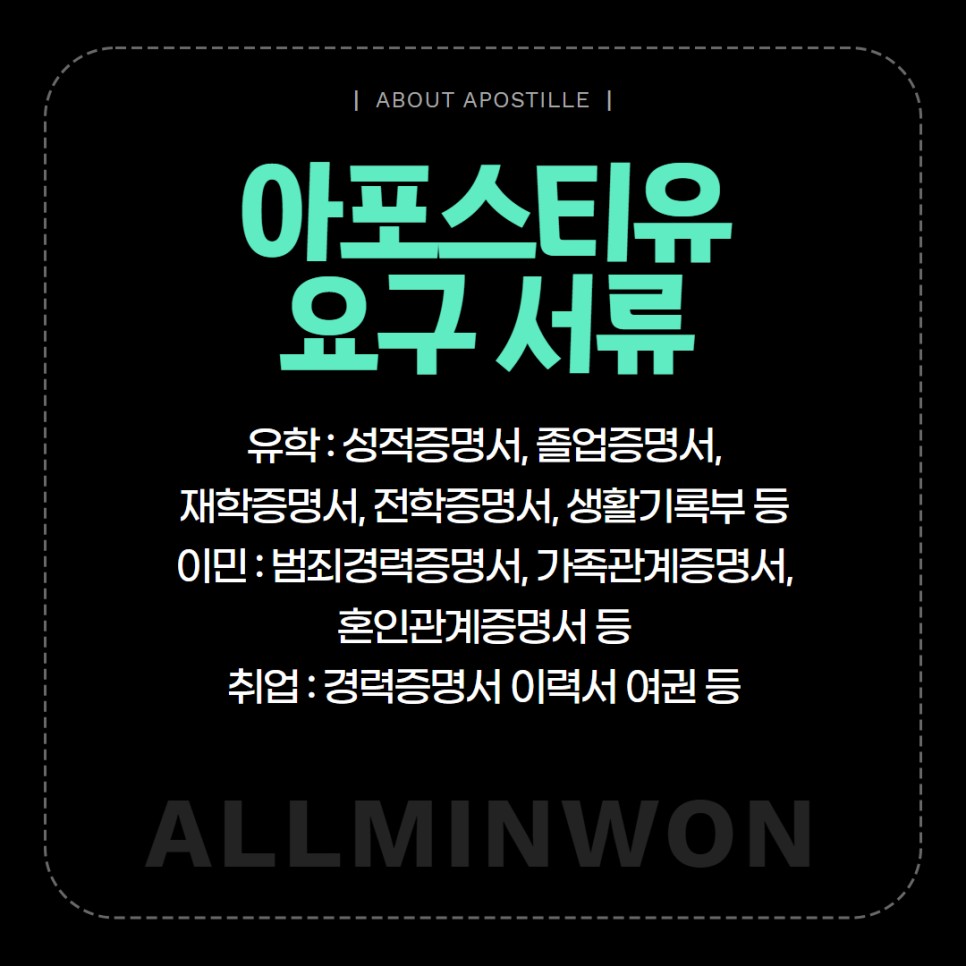 아포스티유를 받아야 하는 특정 서류는 없지만