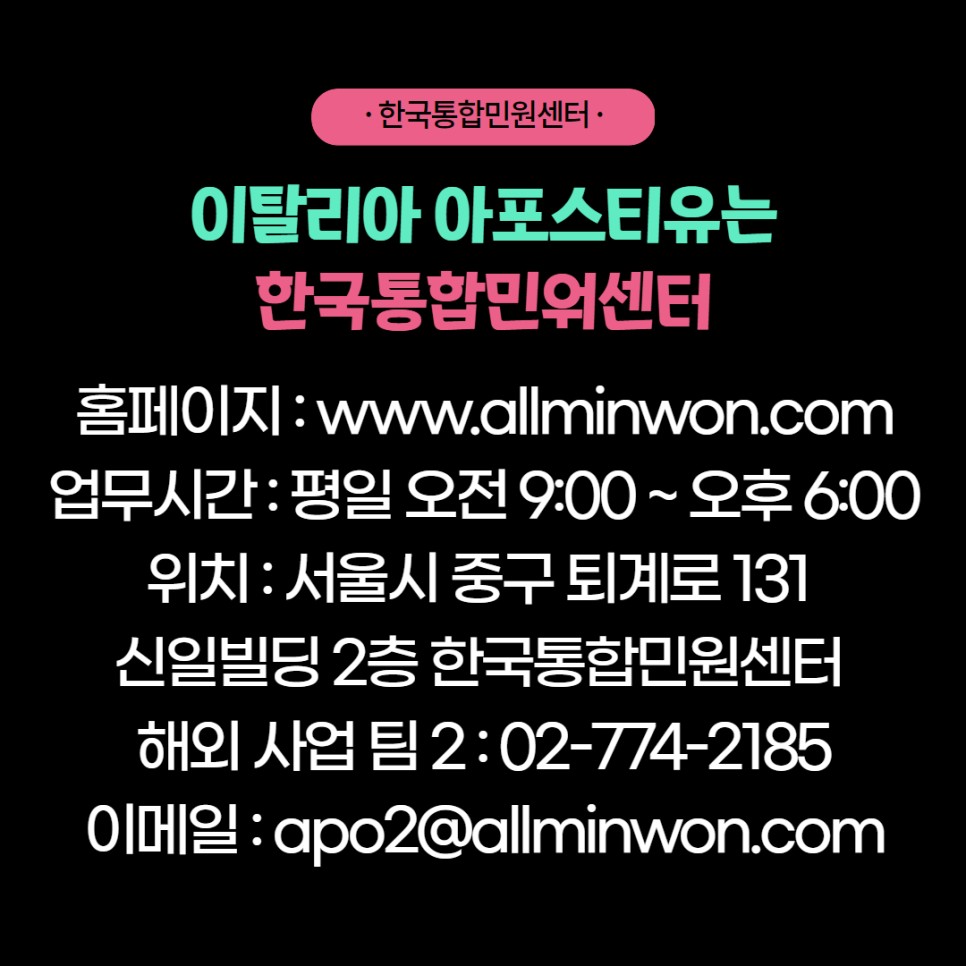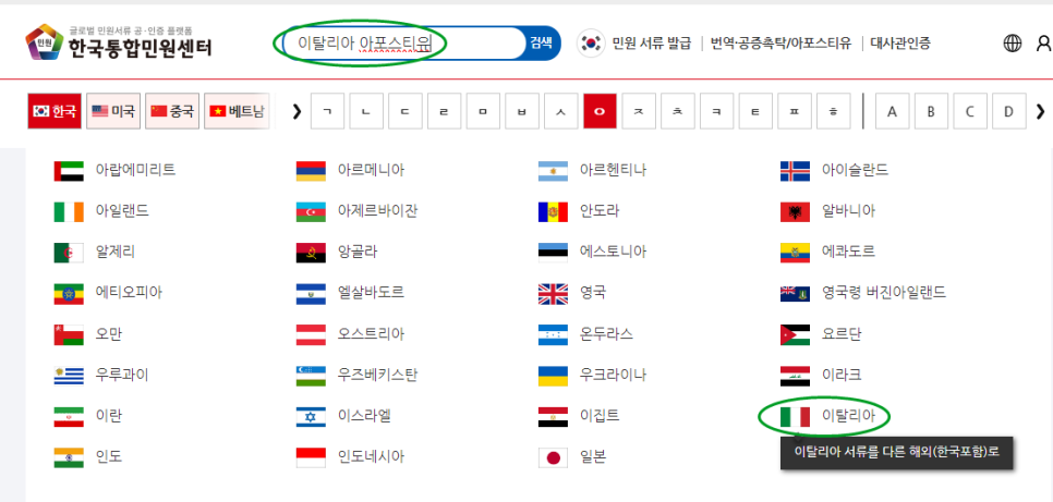※이탈리아와 한국은 아포스티유 협약국입니다