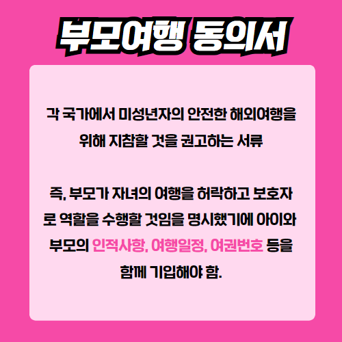 미성년자 보호를 위해 각 국가에서는 미성년자의 '부모여행동의서'를