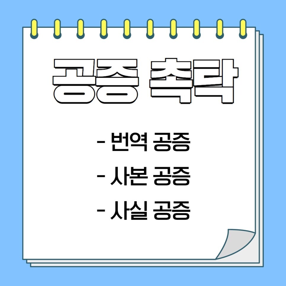 번역공증 : 번역자 또는 촉탁인이 원문과 번역문을 첨부하여