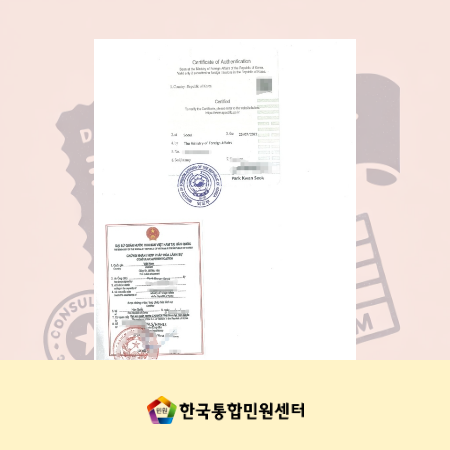 베트남 내에서 공식적인 서류를 사용할 때는 반드시 영사인증을 받아야 합니다.