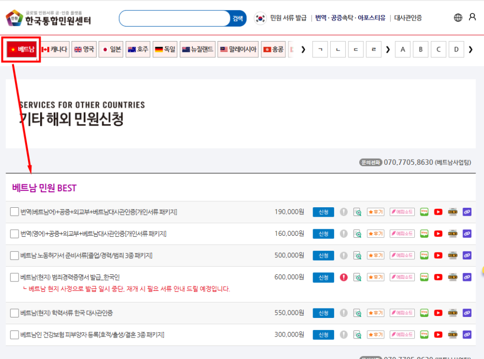 - 상단 국가 리스트에서 [베트남] 클릭하기