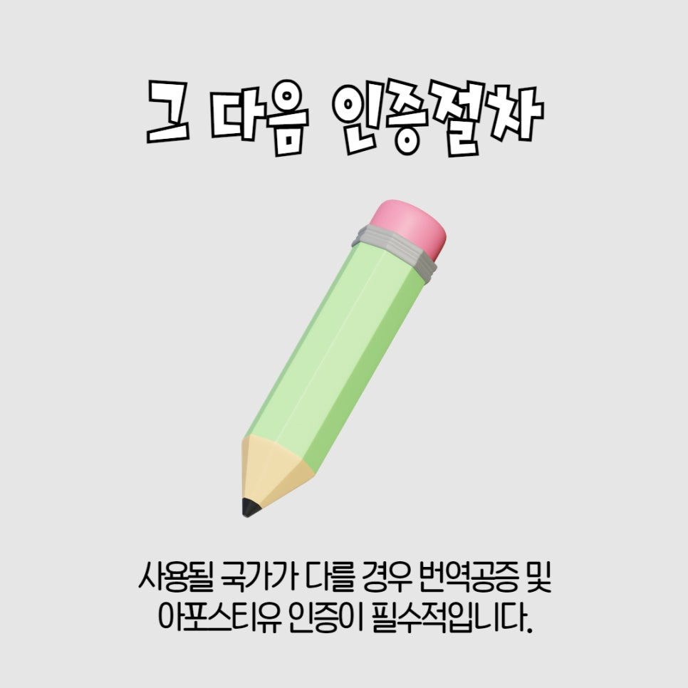 번역공증 및 아포스티유 인증 절차도 필수적으로 진행해야 합니다.