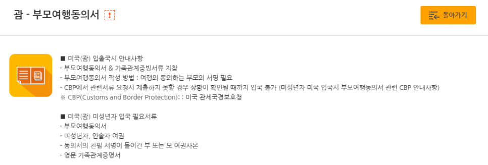 괌과 같은 국가에서는 부모여행동의서가 없으면