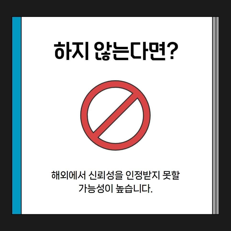 해외에서 신뢰성을 인정받지 못할 가능성이 높습니다.