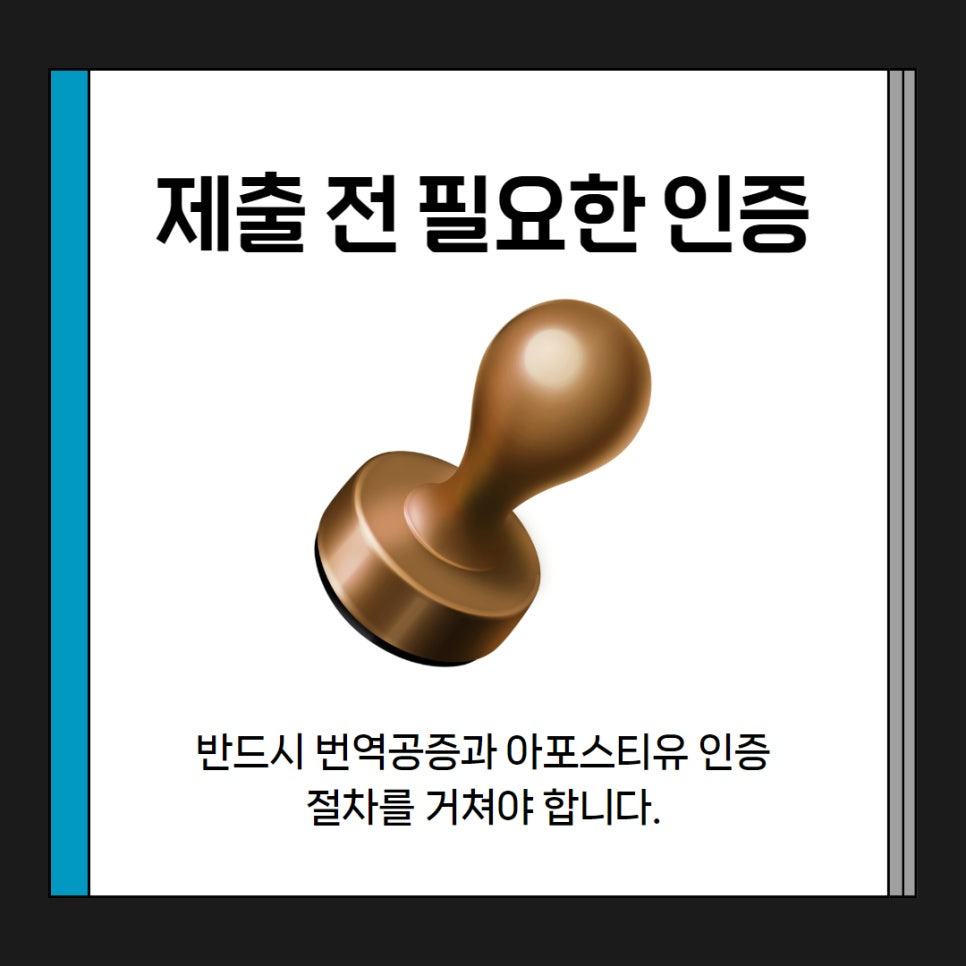 반드시 번역공증과 아포스티유 인증 절차를 거쳐야 합니다.