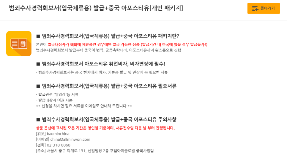 번역공증과 아포스티유 인증이 없는 경우 중국 범죄수사경력회보서는