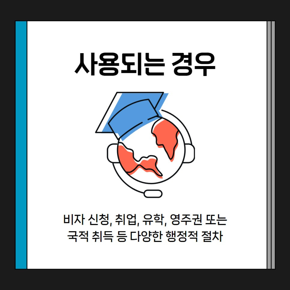 영주권 또는 국적 취득 등 다양한 행정적 절차에 사용됩니다.