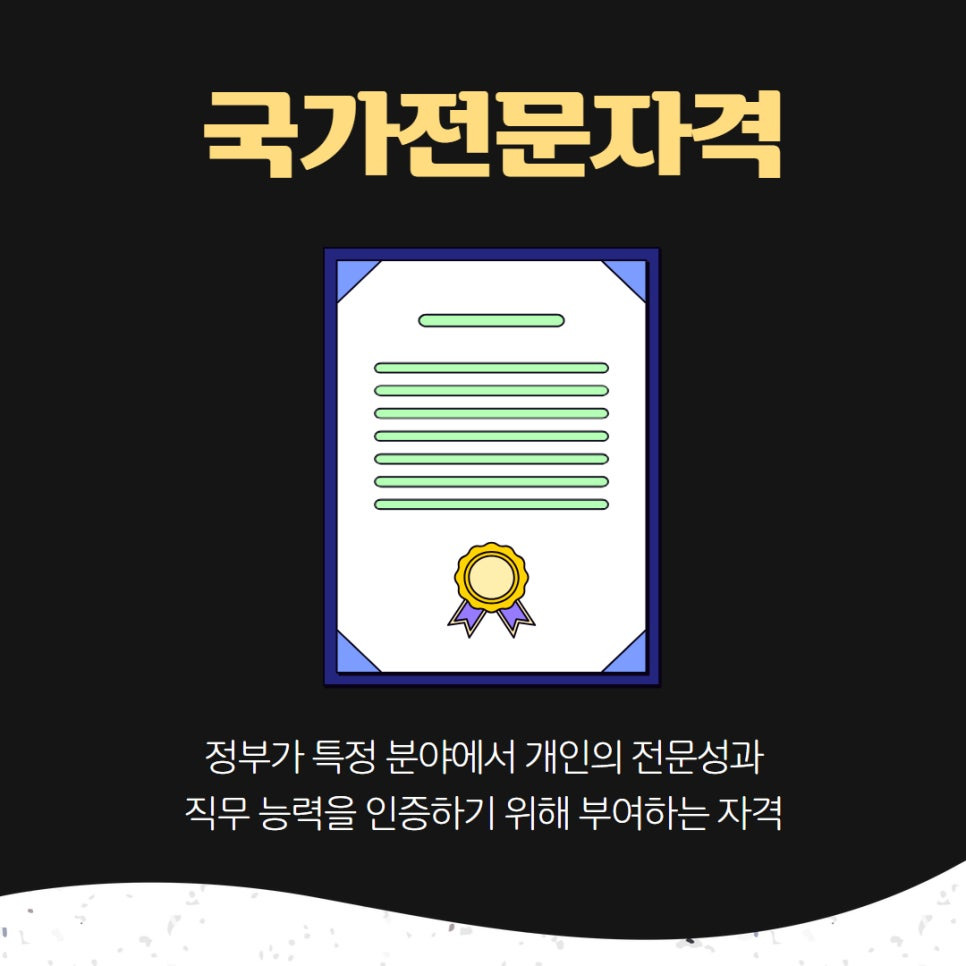 개인의 전문성과 직무 능력을 인증하기 위해 부여하는 자격입니다.