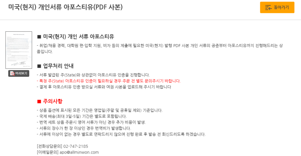 2. 미국 개인서류 아포스티유를 검색해주세요