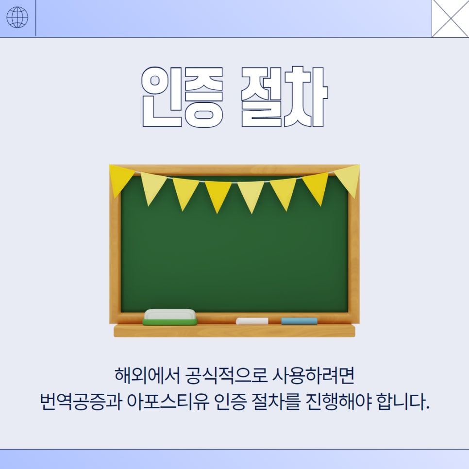 해외에서 사용하려면 아포스티유 인증이 필수적입니다.