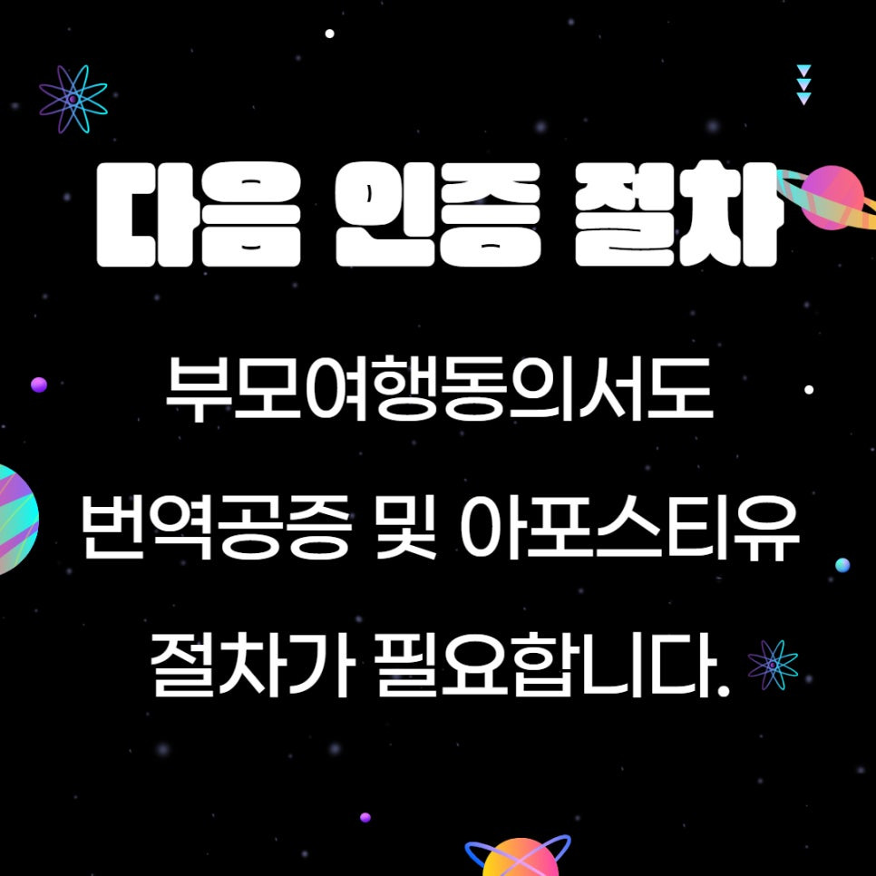 부모여행동의서도 번역공증 및 아포스티유 절차가 필요합니다.