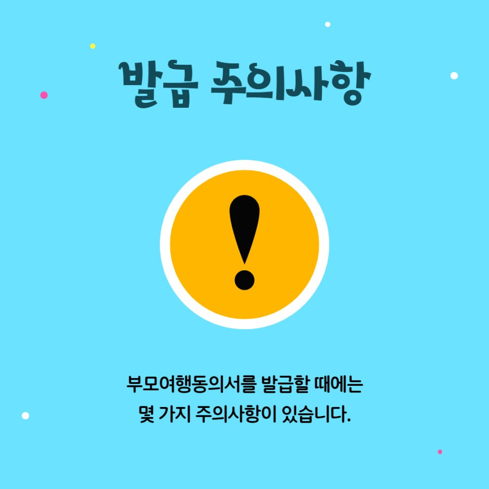부모여행동의서를 발급할 때에는 몇 가지 주의사항이 있습니다.