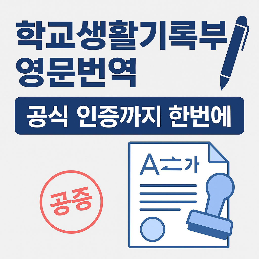 유학, 해외학교 편입, 이중학위, 국제대학원 진학 등으로 학교생활세부사항기록부(생기부) 영문번역을 요청받는 경우가 많습니다. 생기부는 일반적인 졸업증명서보다 훨씬 상세하고 전문적인 내용이 포함되므로, 공식 번역 및 인증 절차가 필요합니다. 한국통합민원센터에서는 공신력 있는 번역사에 의한 생기부 번역, 공증, 외교부 아포스티유, 대사관 인증까지 원스톱 처리가 가능합니다.