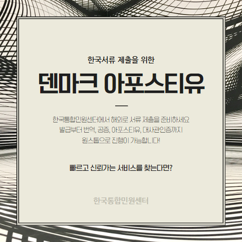 덴마크에서 사용할 졸업증명서, 범죄경력증명서, 가족관계증명서 등 다양한 서류 한국통합민원센터와 함께라면 발급부터 번역, 공증, 아포스티유까지 한 번에 해결하실 수 있어요!